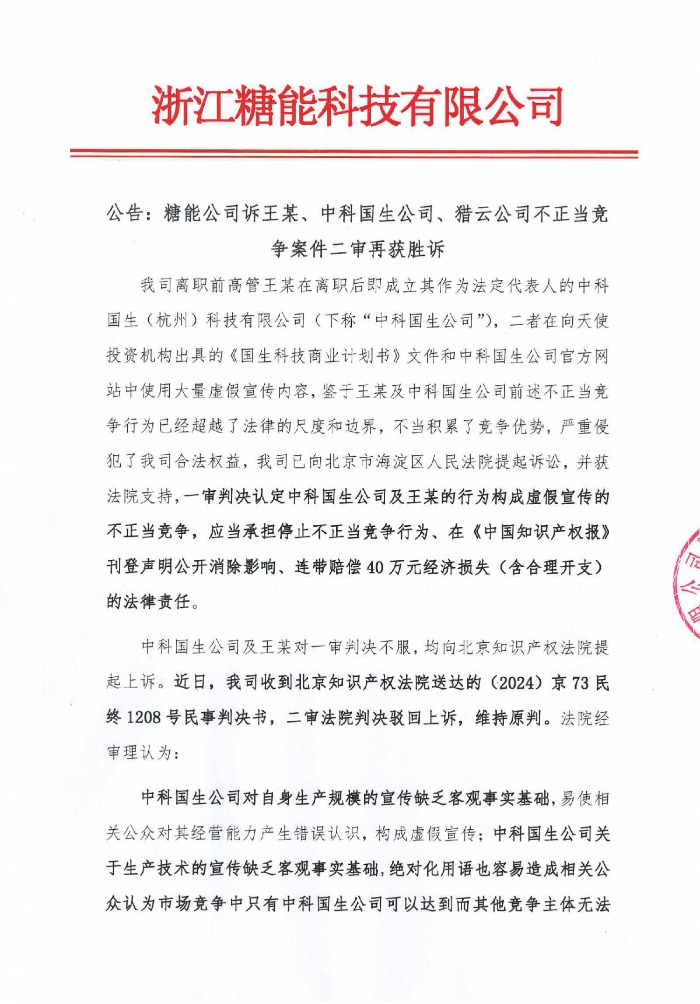 Pengumuman: Sugar Energy memenangkan sidang kedua kasus persaingan tidak sehat melawan Wang, Perusahaan Zhongke Guosheng, dan Perusahaan Lieyun